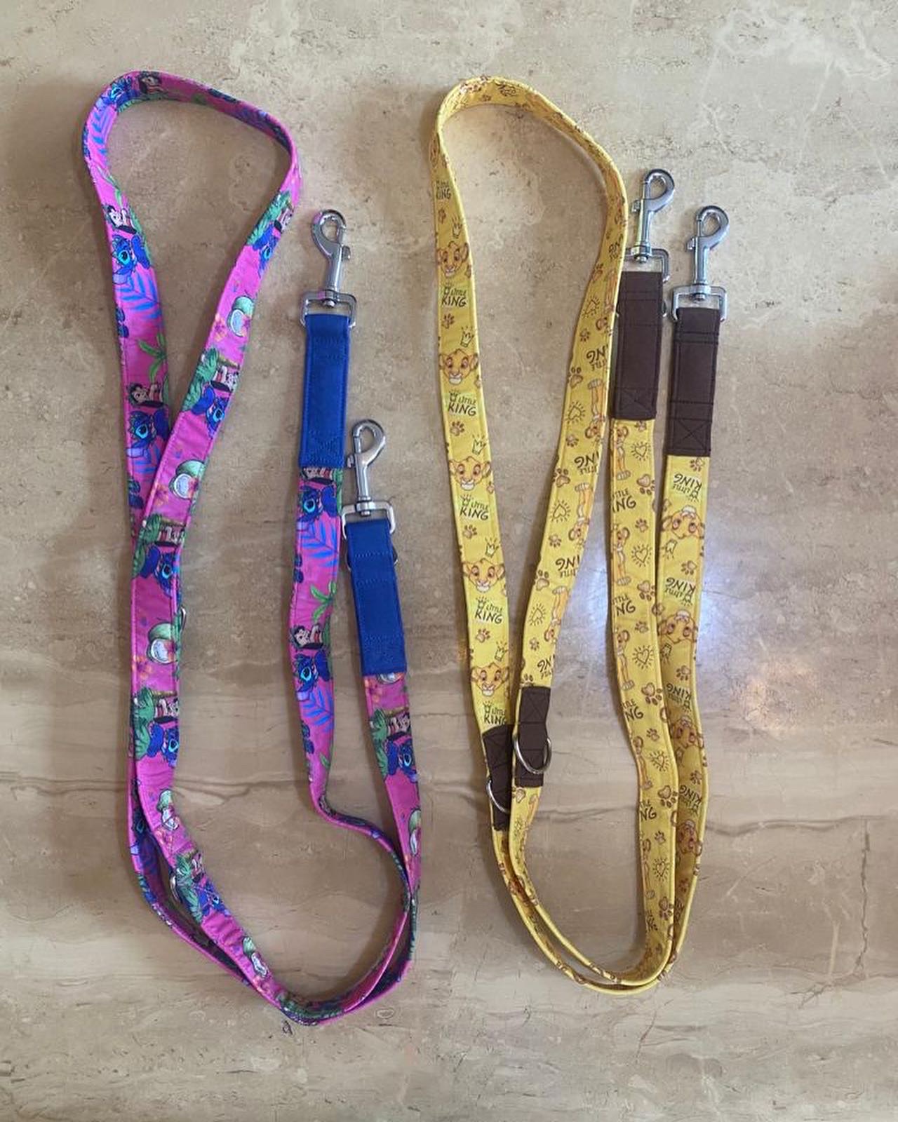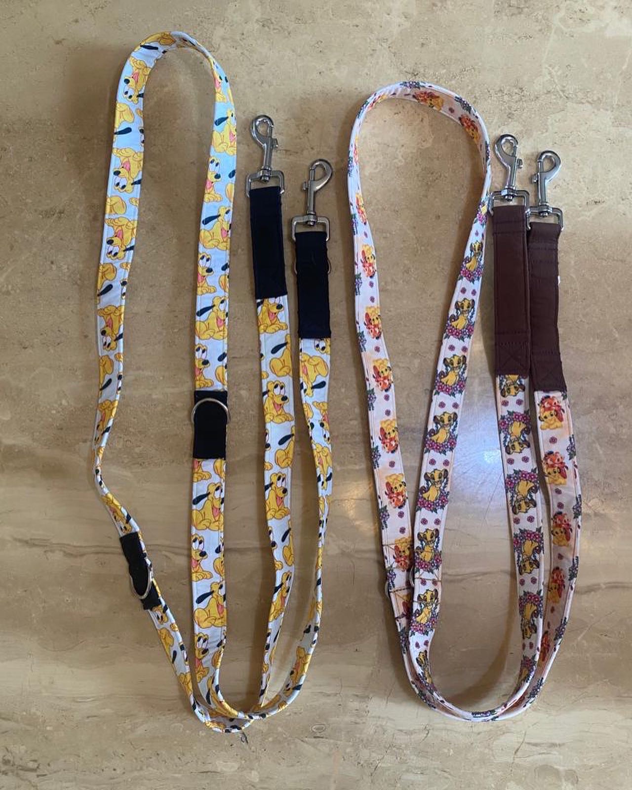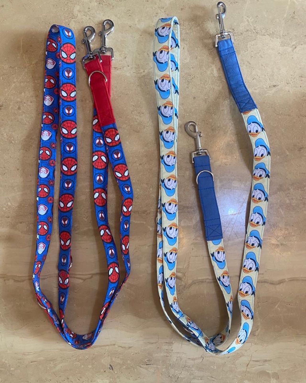 - Por otro lado tenemos las correas multiposición forradas, que como ya indica están forradas con alguna tela estampada proporcionando un toque más llamativo! Las tenemos disponibles con una gran variedad de telas a elegir y con opción de personalizar más artículos al gusto para que tu amigo de 4 patas vaya conjuntado (martingale, arnés, correas, portabolsas, portapremios), incluso puedes ir conjuntado tú también (riñonera, llavero XL, llavero...)